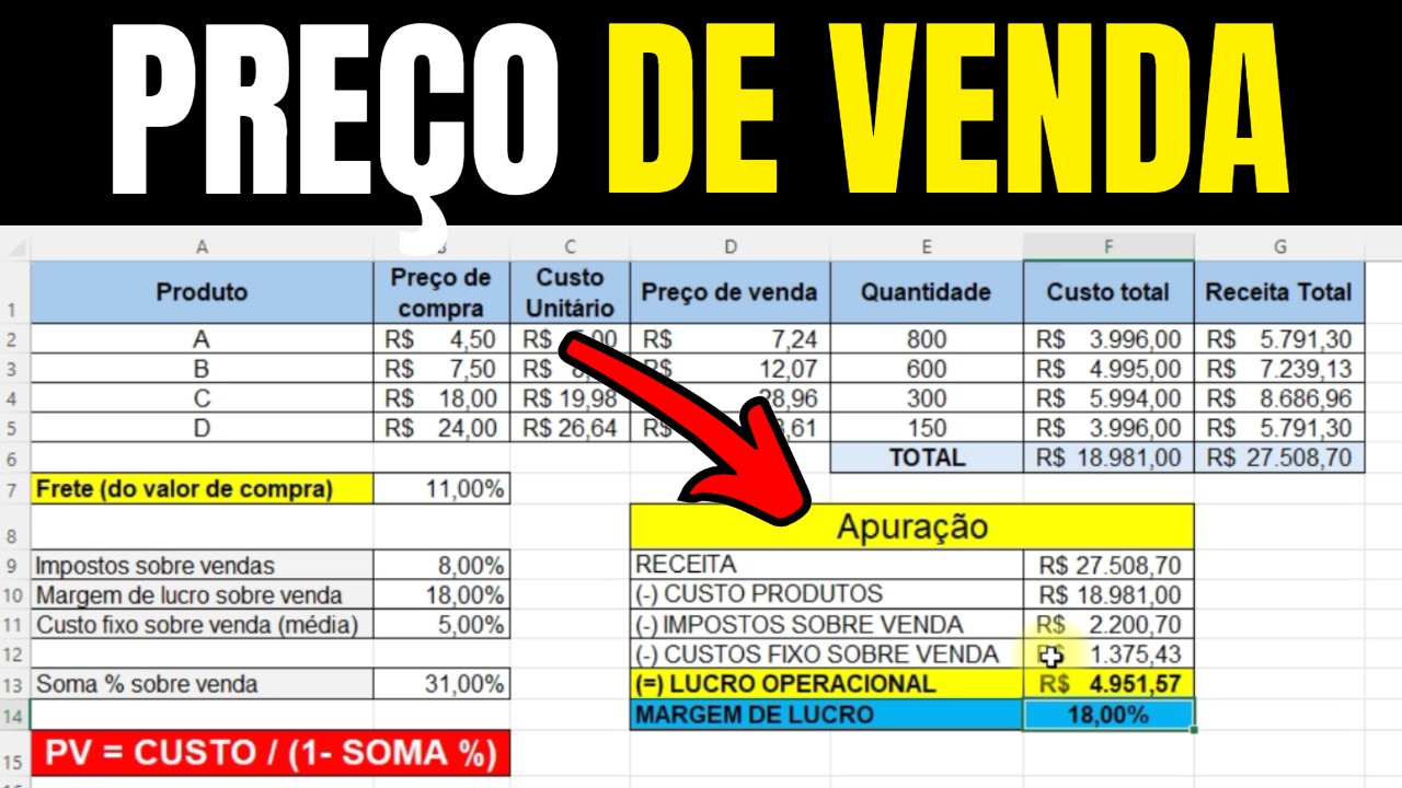 👉 Clique aqui para ver o vídeo: Como Calcular a Margem de Lucro Ideal no Excel (Fácil e Rápido!)