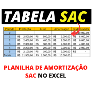 Planilha da Tabela SAC no EXCEL